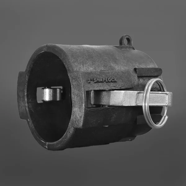 Su estructura combina polipropileno (PP) de alta resistencia con componentes en acero, logrando un equilibrio óptimo entre resistencia química, durabilidad mecánica y estabilidad estructural. El polipropileno proporciona excelente comportamiento frente a agentes químicos y humedad, mientras que el sistema metálico de cierre Camlock asegura firmeza en el acople y resistencia al desgaste por uso repetitivo.
