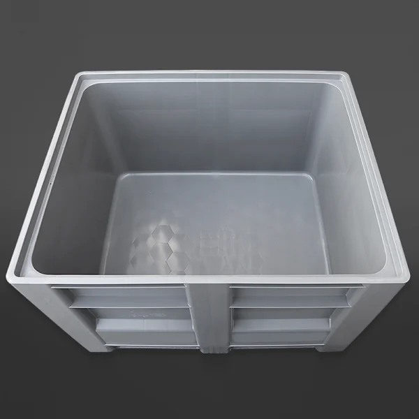 Gracias a su estructura soldada de alta rigidez, este bins opera sin necesidad de mantenimiento, soporta impactos de carretillas gracias a su diseño de doble pared en zonas críticas y es resistente a temperaturas entre -30 °C y +40 °C (y breves exposiciones hasta +90 °C). La geometría del borde superior e inferior permite apilado seguro y compatibilidad con sistemas europeos de pallet boxes, incluyendo almacenes automatizados de estanterías altas.