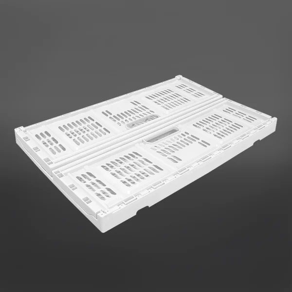 Su diseño ventilado y apilable maximiza el uso del espacio, mientras que el mecanismo de plegado rápido reduce significativamente los requerimientos de almacenamiento cuando no está en uso. Con dimensiones exteriores de 60 x 40 x 23 cm y un peso aproximado de solo 1.6 kg, combina ligereza y robustez.