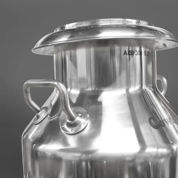 Lechero de acero inoxidable de 50 litros, diseñado especialmente para la industria alimentaria. Fabricado en acero inoxidable 304 de grado alimenticio, garantiza máxima durabilidad y resistencia, ideal para el almacenamiento y transporte de líquidos como leche, agua y otros productos alimentarios.
