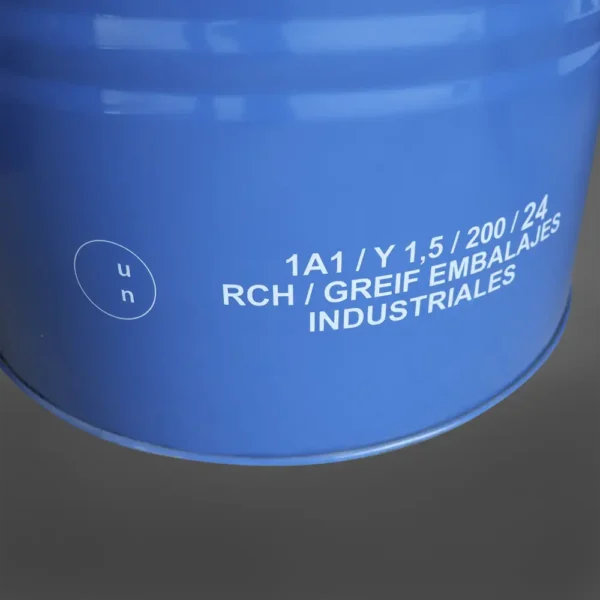 Cuenta con una tapa fija, tipo 1A1, y su interior está revestido con barniz epoxi fenólico, asegurando la integridad y la calidad del contenido almacenado.
