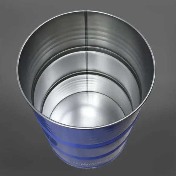 Fabricado en acero de alta calidad, el tambor cuenta con un recubrimiento exterior de esmalte azul horneado para mayor durabilidad. La tapa incluye una empaquetadura de caucho acrilo-nitrilo que garantiza un sellado hermético.